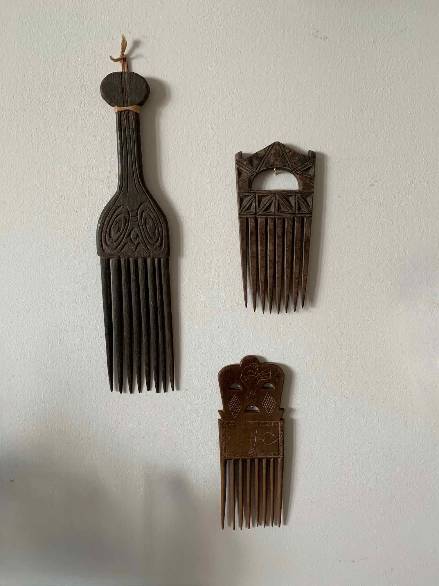 3 stk. Kämme, Ghana, DR Kongo, Papua-Neuguinea, Holz